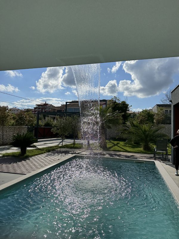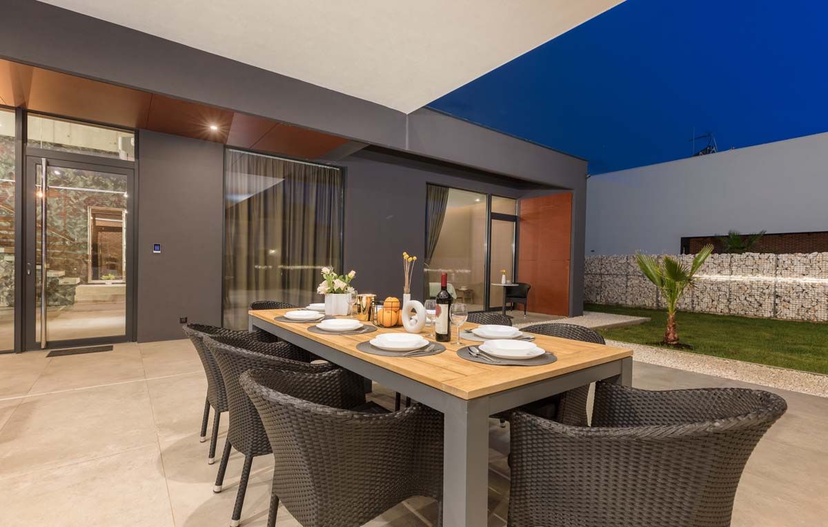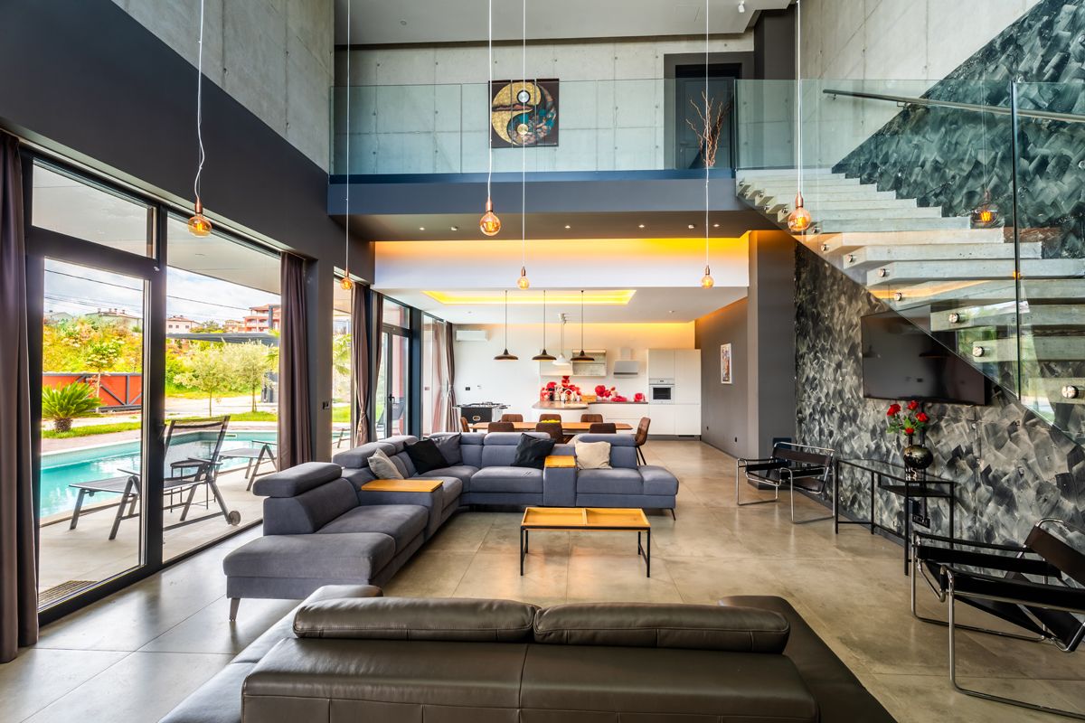 Villa Grande Arche Istria je potpuno nova, završena sredinom 2021., a odlikuje ju nezaboravan arhitektonski izričaj koji nikome ne može proći nezamijećeno. Inspirirana je pariškom poslovnom zgradom Grande Arche poznatoj u svijetu arhitekture koju karakterizira veliki luk koji spaja dvije zgrade. U interijeru Istarske Ville Grande Arche se posebno ističe unutarnji ulazni lobby sa 7,5 metara visinom kojeg ograđuju prozračne stepenice koje vode na kat. Posebno atraktivna je i blizina samog bazena interijeru - uvučenog ispod gornje etaže, na udaljenosti od samo 5 metara od dnevnog boravka i blagovaonice.